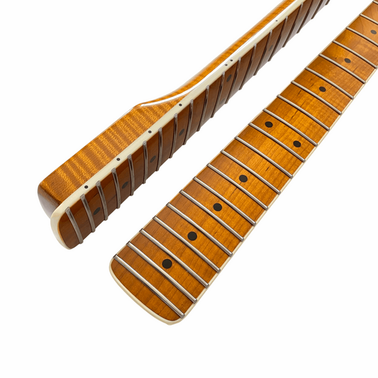 Roasted Electric Guitar Neck Arzuza Music White Binding Bone Nut High Gloss 25.5 inch Scale